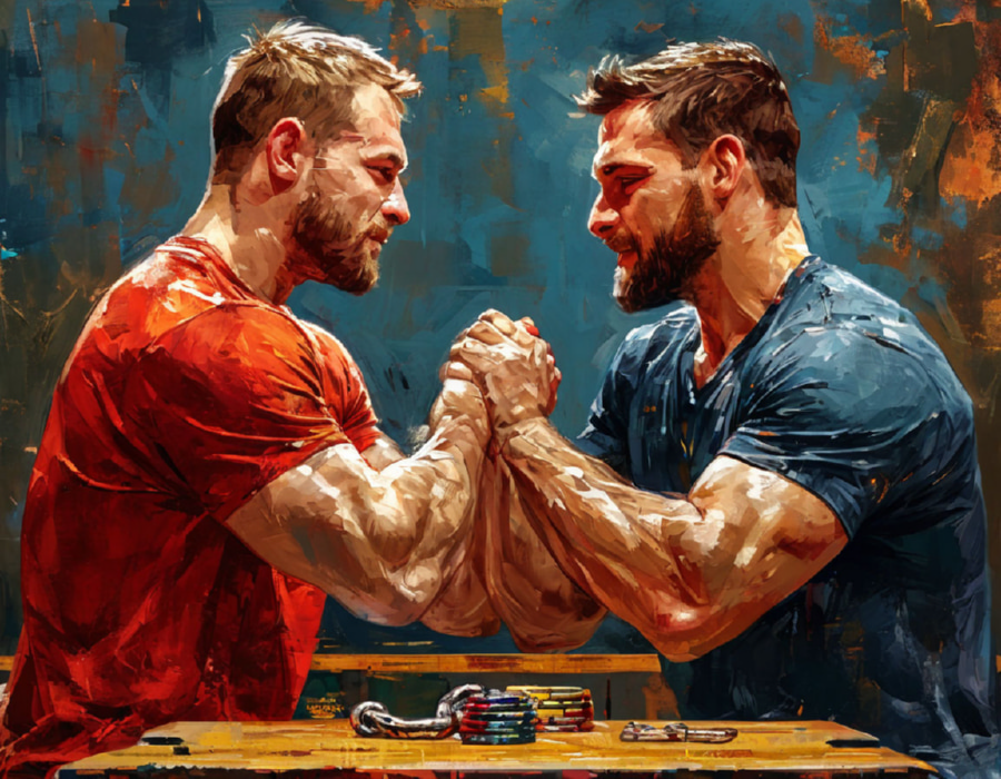 Армрестлинг — соревновательный спорт, где двое участников меряются своей силой рук. Победителем является тот, кто первый прижал руку соперника к столу.