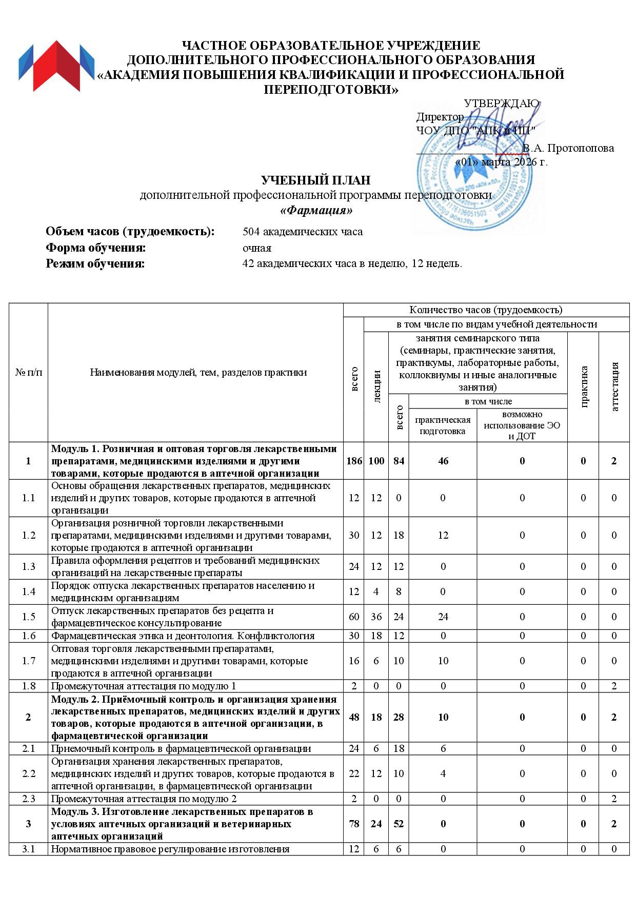 Модуль 1. Розничная и оптовая торговля лекарственными препаратами (186 часов):