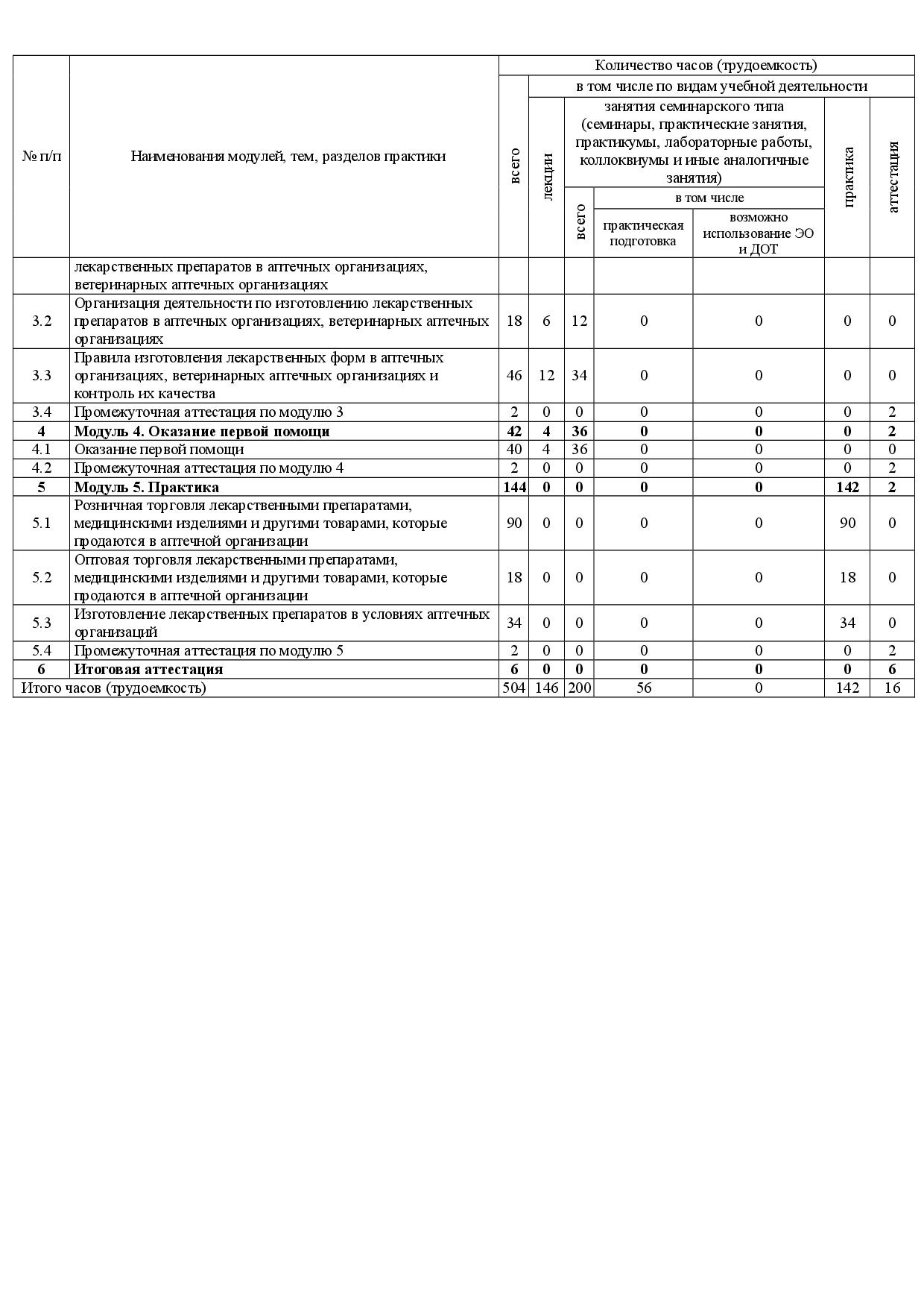 Модуль 3. Изготовление лекарственных препаратов в аптеке (78 часов):