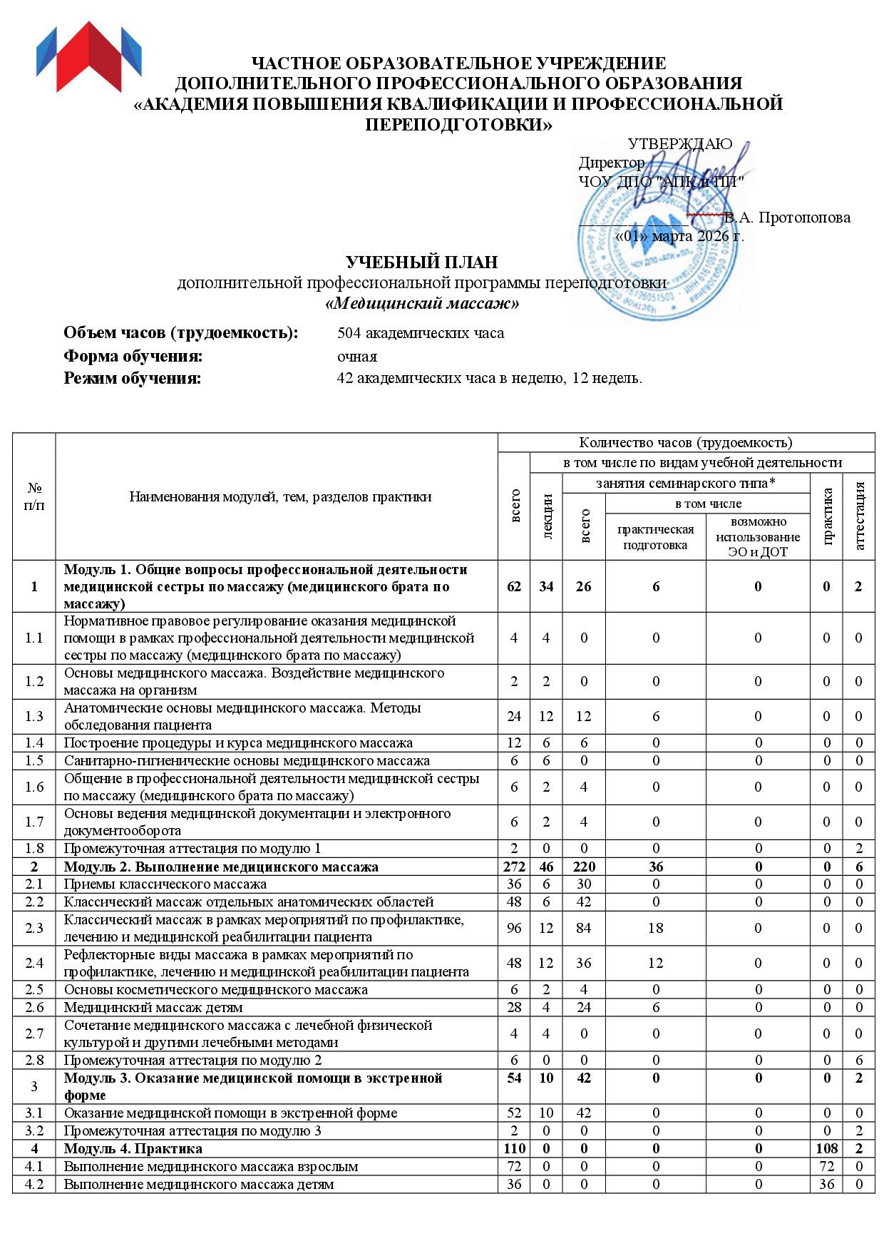 Модуль 1. Основы профессиональной деятельности (48 часов):