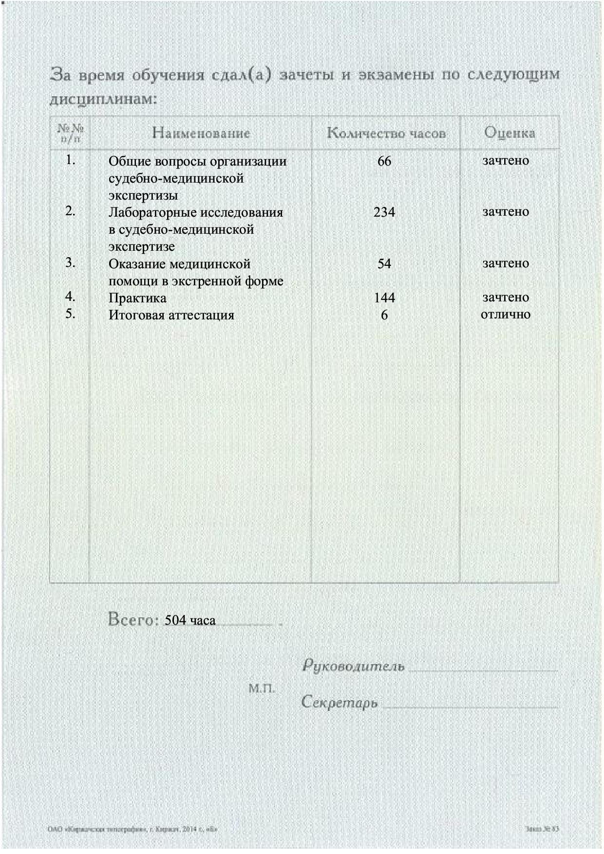 Содержание курса полностью отвечает критериям профессионального стандарта «Специалист в области судебно-медицинской экспертизы» и ориентировано на достижение 5-го квалификационного уровня.