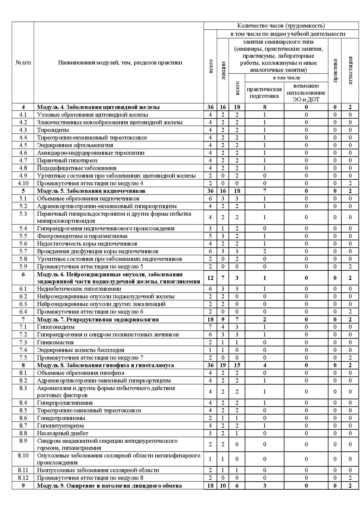 Обучение построено на сочетании фундаментальной теории и отработки практических навыков, необходимых для ведения пациентов с эндокринными заболеваниями.