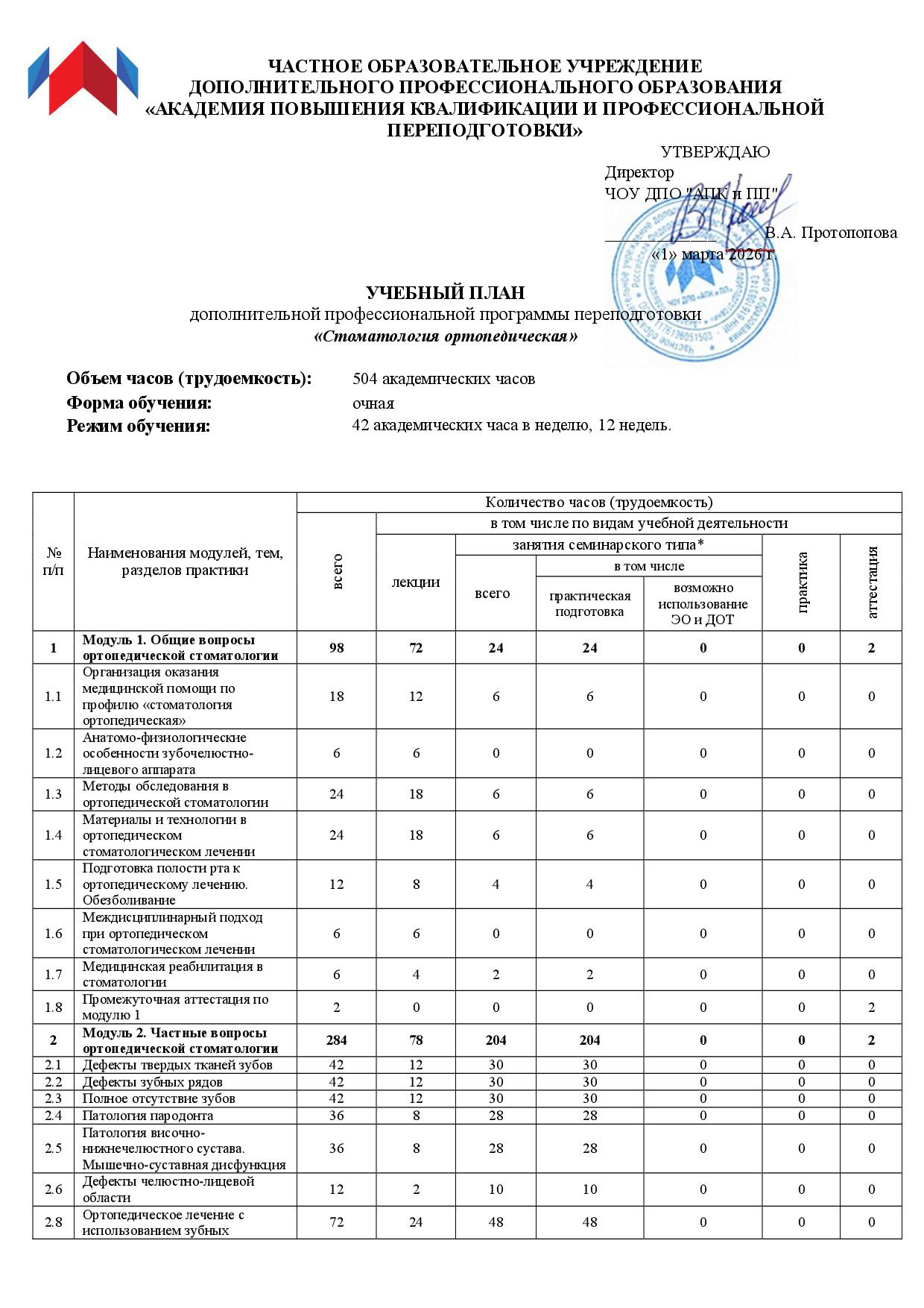 Обучение длится 3 месяца, включает 600 академических часов. Обучение предполагает практическую подготовку. По завершению обучения Вам выдается диплом о профессиональной переподготовке с правом ведения деятельности и присвоением квалификации «стоматолог-ортопед». Диплом стоматолога-ортопеда вносится в ФИС ФРДО.