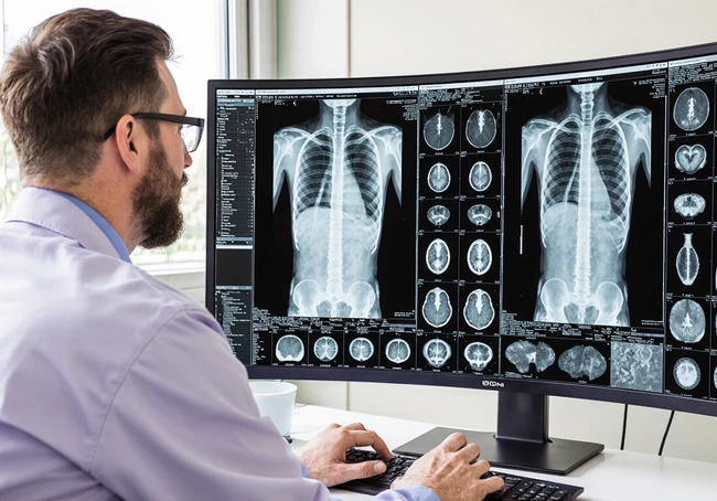 • Интерпретация рентгенологических изображений: навыки анализа и интерпретации рентгеновских снимков и томограмм, включая выявление патологий;